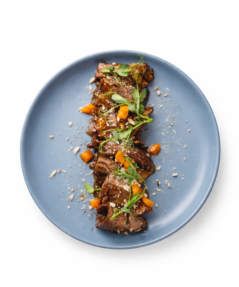 Телятина, чеснок, фирменная заправка